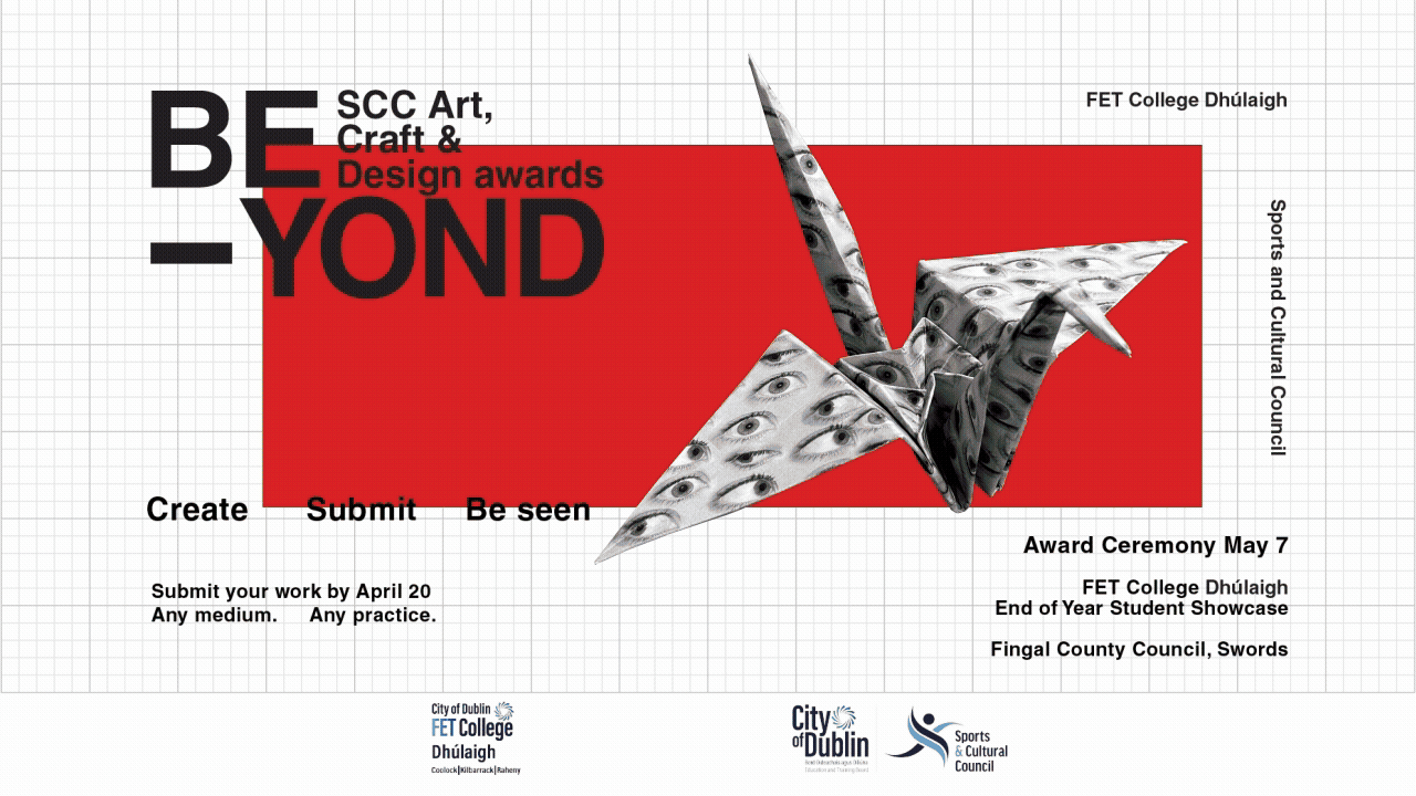 Selected winners will be invited to attend an awards ceremony as part of the FET College Dhúlaigh Art & Design Graduate Show on 7th May at The Atrium, Fingal County Council, Swords.