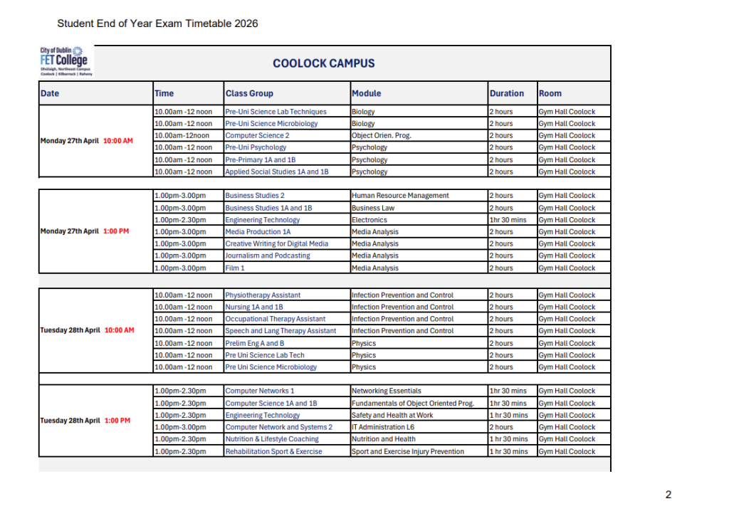 City of Dublin FET College, Dhúlaigh, invites prospective students, families and friends to our Information Evening on Wednesday, 4th March, from 3.00 to 7.00 pm, at our Coolock Campus, Barryscourt Road.