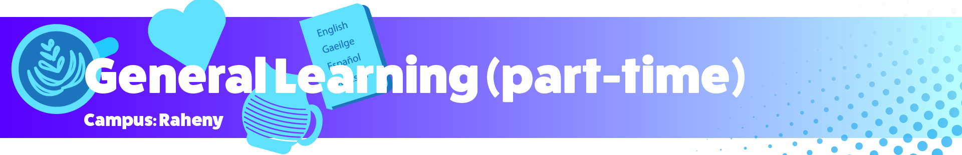 General Learning offers a chance to enhance your knowledge and skills in a broad range of subjects in a friendly and supportive environment. Candidates who haven’t completed Leaving Certificate take up this course to complete their schooling, to try new subjects at an accessible level, as a stepping stone to further education, to improve employment prospects and to gain confidence.