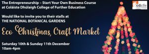 Students from The Entrepreneurship – Start your own Business course at Coláiste Dhúlaigh College of Further Education will have stalls at this year’s Eco Christmas Craft Market at the National Botanic Gardens in Glasnevin. The market takes place on December 10th & 11th from 10am-4pm. Come along to shop for sustainable gifts and a lot more.