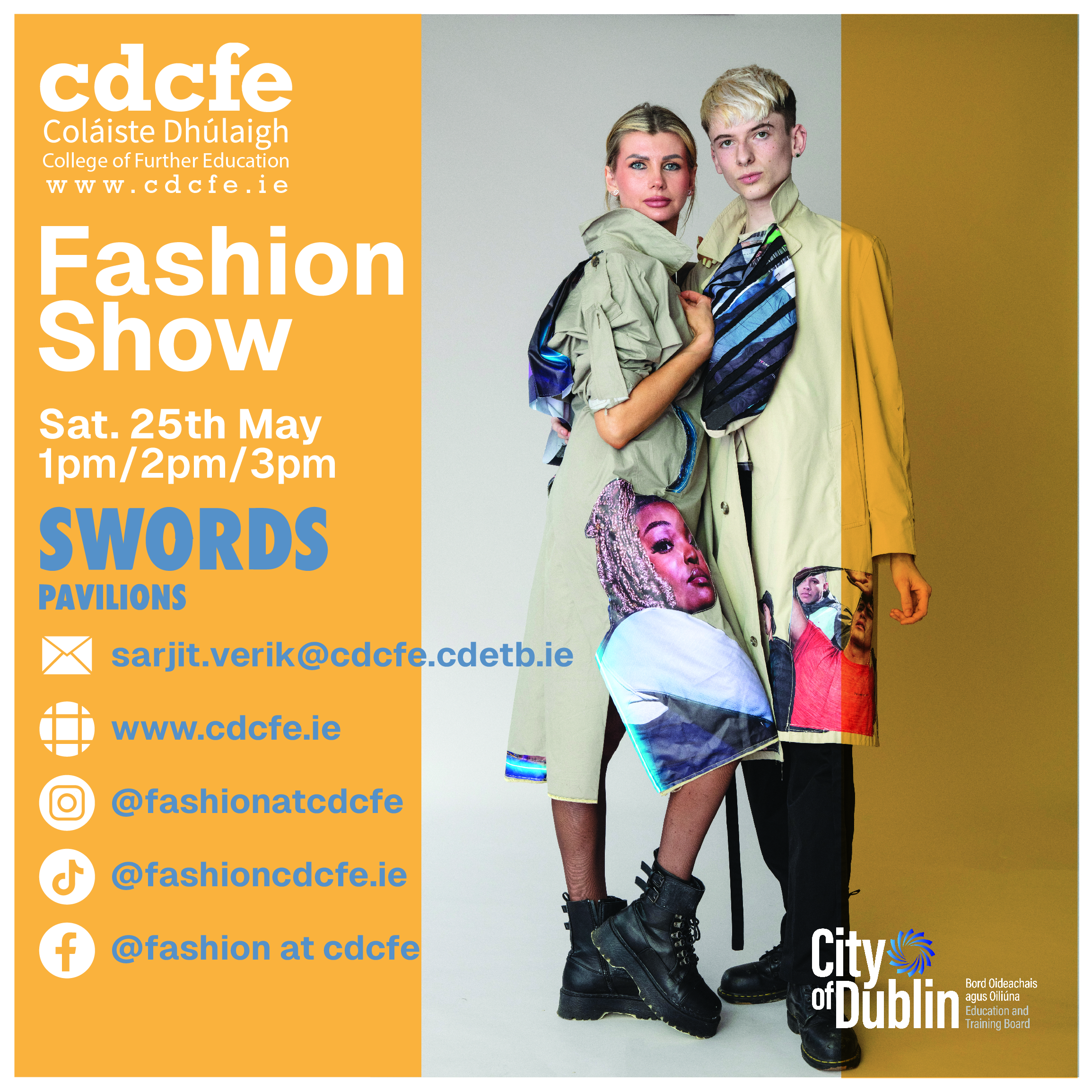 The Fashion Design & Styling course at Coláiste Dhúlaigh College of Further Education are having a catwalk show in Swords Pavilions on Saturday 25th May. Come along and see fabulous creations from our QQI Level 5 & 6 classes.