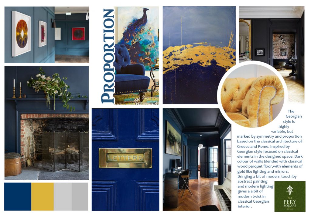 Went with a Georgian inspired interior with modern twists throughout in her accessories and lighting. Using deep blue with mustard accents creating a sophisticated yet current interior. picking up the hues from the opulent peacock feather kasia’s design was consistent throughout and a bold twist on Georgian architecture and design.