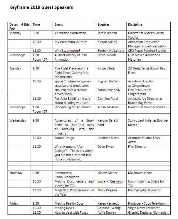 Kevin Lynch, head of the Animation course at Colaiste Dhulaigh said “Keyframe is a brilliant opportunity for students to get an insight into the industry and how to break in to it”.